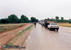 演奏会を終えて、学生さんたちとゲル村に別れをつげ、ツアー一行は街にもどります。よくぞ誰も風邪を引かなかったものです。やれやれ。ところが帰る道すがら、なんだか大渋滞ではないですか。クルマで道がつかえている。バスから降りて先に行ってみると、トラックがぬかるみにはまって、道をふさいでいるのです。未舗装の道が、珍しい大雨で崩れてしまったようです。もちろん、フフホトに戻る道はこの1本しかありません。迂回することもできません。