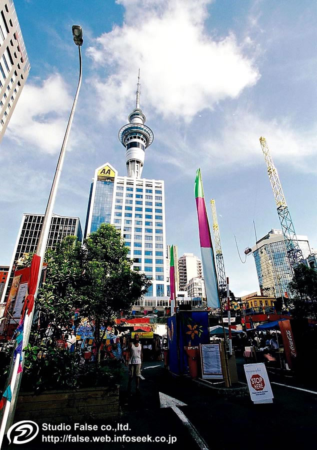 思いがけずお洒落なカフェで演奏したチンドン一行。オークランドの街並みを見物しながら(そして自分たちは見物されながら)、徒歩でホテルへ帰ります。この街はアジア人が多いということで、中国語、韓国語で書かれた看板も目につきます。私、本業はグラフィックデザインでもありますが、本当にこの街は 景観もサインも素晴らしい。高品質のデザインが街に溢れています、ということで写真撮りまくり。