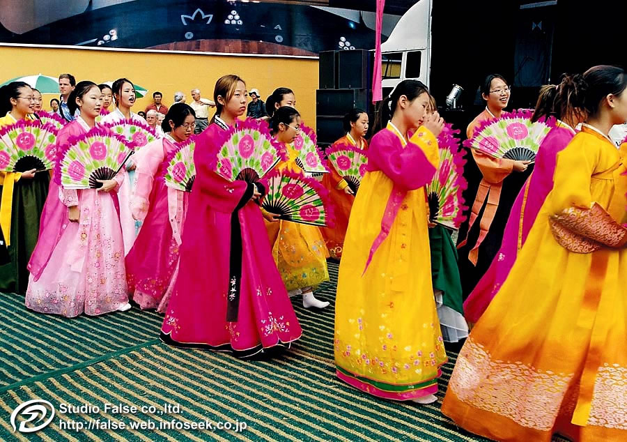 どうですか。先頭がチンドン、その後にチマチョゴリの一団、さらにアジア各国の女性たち。奇想天外だけど美しく楽しいパレードです。考えた人も素晴らしければ、突然のオーダーをさらりとこなし、しかも「見せ物」として成立させてしまう、チンドンのスタイルの柔軟さと奥深さを感じます。