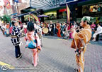 たった20分では物足りない、とばかりに、そのままストリートパフォーマンスを継続。近くのショッピングセンターが大歓迎で迎えてくれました。チンドン屋さんにとっては、当たりまえのことのようですが、考えてみると普通のミュージシャンは、出番が終われば帰ってしまいます。こんなサービスいっぱいの集団は珍しいのでしょうね。