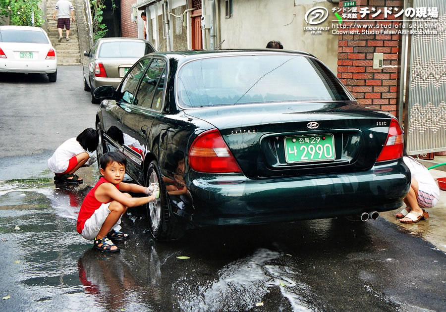 熱い熱いオッチャンたちに別れをつげて、チンドンの隊列は街中にはいっていきます。メンバーのみなさんも、この異国での街廻りはとても楽しそう。笑顔が違います。ここからしばし、チンドンの隊列と街の風景写真が続きます。みなさんも隊列についていっているつもりで、全州の街並みをお楽しみください。